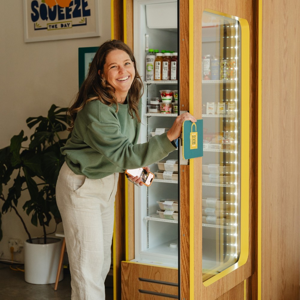 It’s total "Grab and Go" convenience. Just tap to unlock the door, take what you want, and close it. The fridge automatically identifies what was taken and handles the payment, so there’s no checkout line or scanning required.